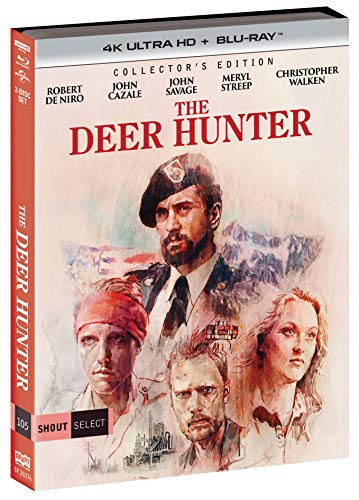 In 1968, Michael (Robert De Niro), Nick (Christopher Walken) and Steven (John Savage), lifelong friends from a working-class Pennsylvania steel town, prepare to ship out overseas following Steven’s elaborate wedding and one final group hunting trip. In Vietnam, their dreams of military honor are quickly shattered by the inhumanities of war; even those who survive are haunted by the experience, as is Nick’s hometown sweetheart, Linda (Meryl Streep).